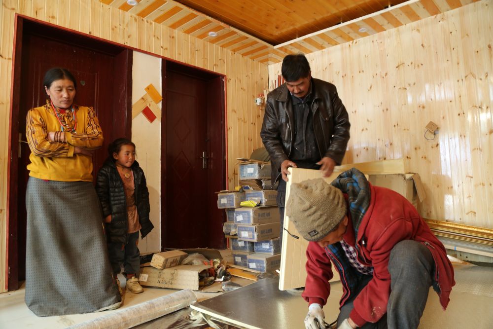 青海省果洛藏族自治州瑪多縣黃河鄉(xiāng)果洛新村牧民正在家中安裝地暖。(受訪者供圖)