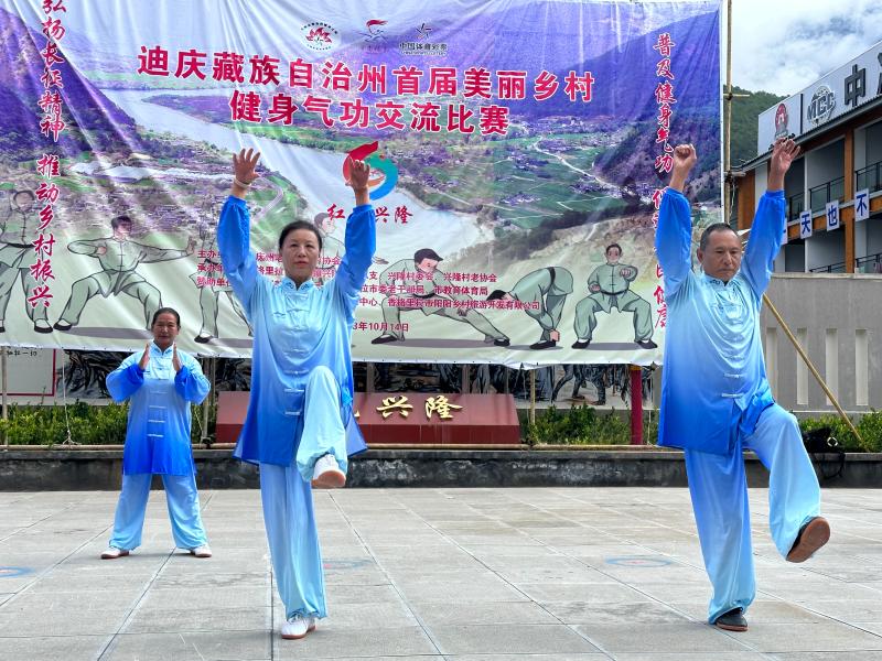 10月14日,迪慶州首屆美麗鄉(xiāng)村健身氣功交流比賽在香格里拉市金江鎮(zhèn)興隆村紅色研學(xué)基地開賽。此次比賽共有8支代表隊(duì)80名運(yùn)動員參賽。