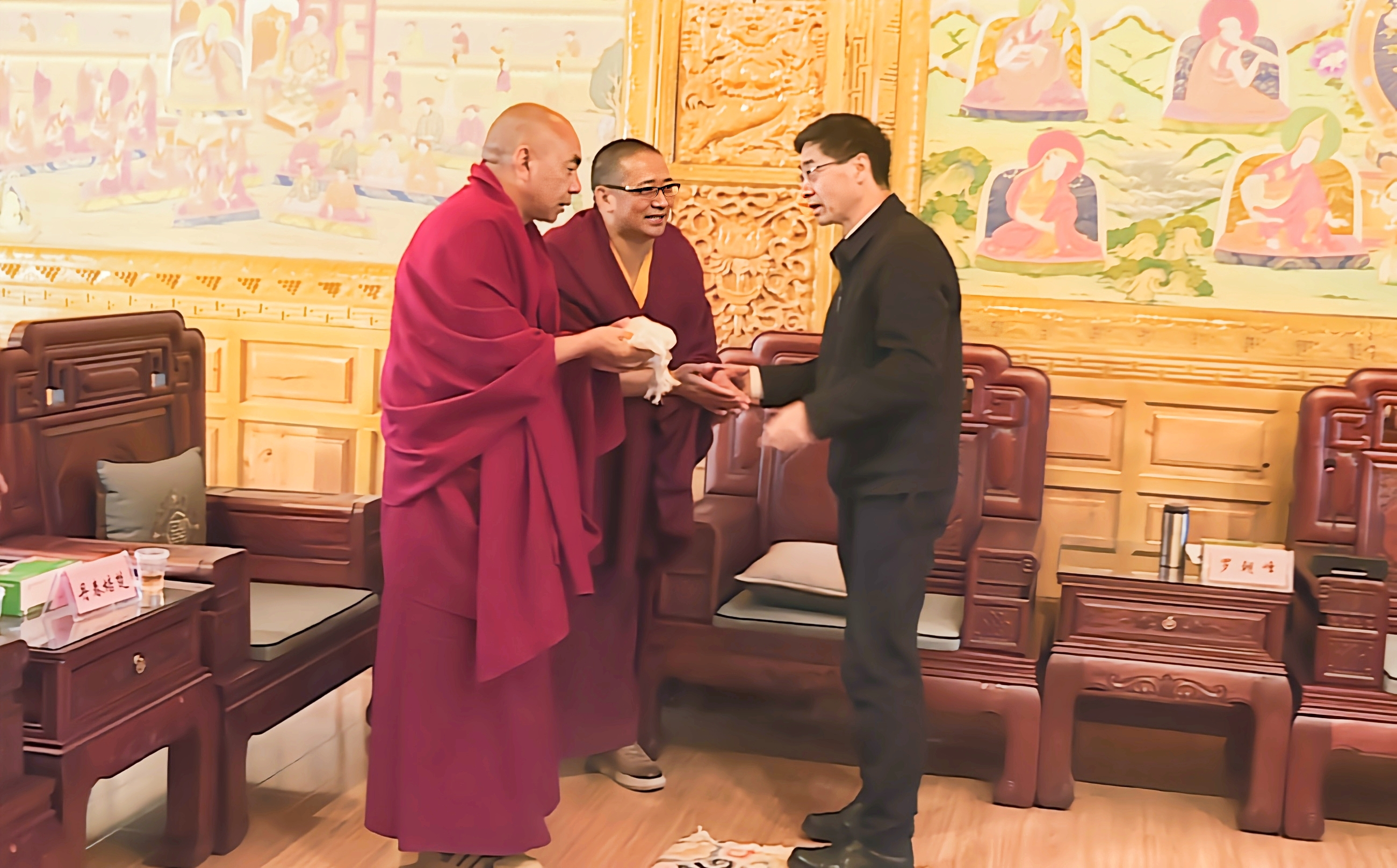 在松贊林寺,羅朝峰與宗教界代表人士深入交流座談,詳細了解僧人學修、生活等情況,面對面傾聽他們的心聲、訴求,引導僧人們從多年來國家面貌、人民生活發(fā)生的變化,松贊林寺基礎設施、僧人修行條件的變化中憶苦思甜,感念黨恩。希望他們珍惜和諧穩(wěn)定的大好局面和良好的修行生活條件,深入踐行習近平總書記提出的“政治上靠得住、宗教上有造詣、品德上能服眾、關鍵時起作用”政治要求,繼承和發(fā)揚愛國愛教的優(yōu)良傳統(tǒng),進一步鑄牢中華民族共同體意識。