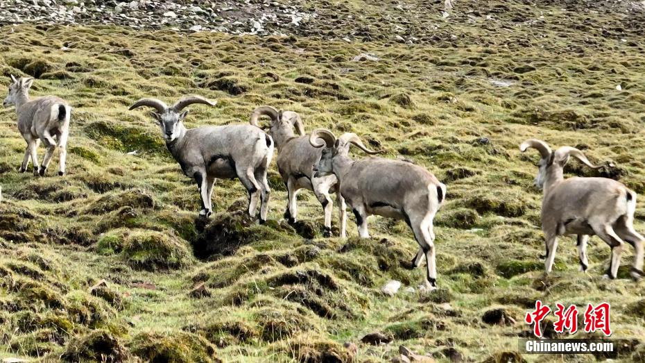 圖為巖羊群在鏡頭前“合影”。