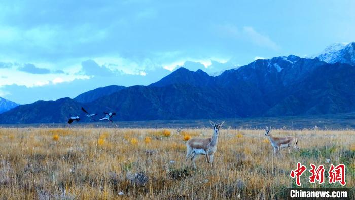 黑頸鶴、鵝喉羚多種野生動(dòng)物“同框”現(xiàn)身青海都蘭湖國(guó)家濕地公園
