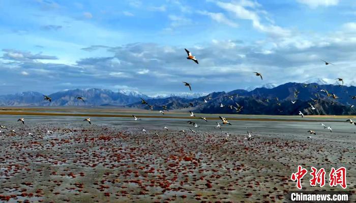 圖為多種野生鳥(niǎo)類在濕地公園上空飛翔。 海西州融媒體中心供圖