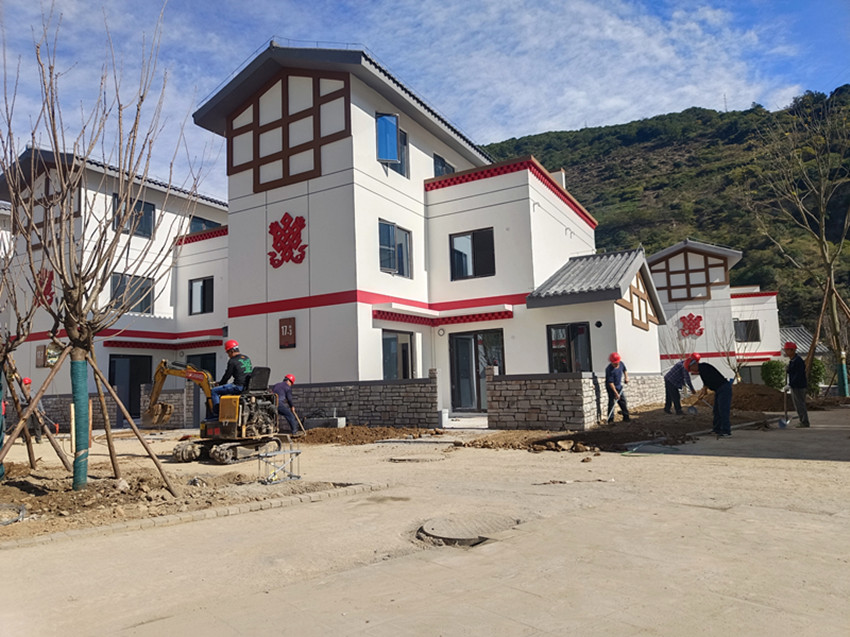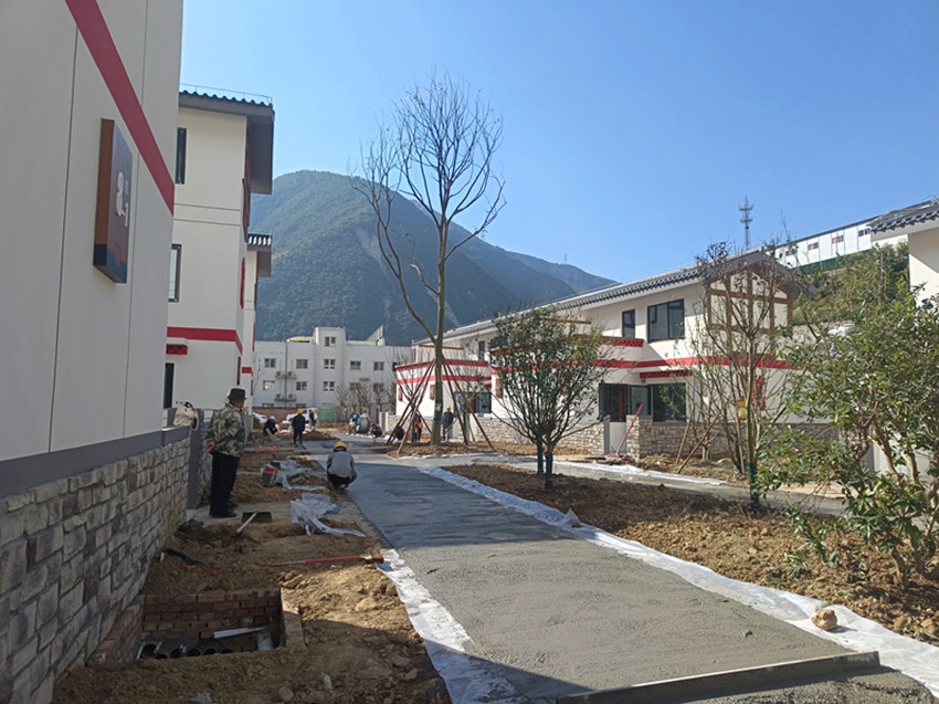 11月5日,記者走進(jìn)瀘定縣德威鎮(zhèn)奎武村“9·5”瀘定地震災(zāi)后重建集中安置點(diǎn),只見(jiàn)一幢幢繪有“如意結(jié)”和穿斗裝飾等瀘定傳統(tǒng)建筑元素以及“瀘定紅”“紅飄帶”等民族特色的安置房沿大渡河畔依次排開,一條條寬敞平整的水泥硬化道路將這些風(fēng)貌一致、戶型合理、結(jié)構(gòu)安全的安置房屋串聯(lián)起來(lái)。幾十名工人正在安置點(diǎn)內(nèi)忙碌,有的在鋪設(shè)路面、有的在栽種綠化樹、有的在搬運(yùn)廢渣……,拿到鑰匙的部分村民正在進(jìn)行室內(nèi)裝修,現(xiàn)場(chǎng)一派繁忙景象。