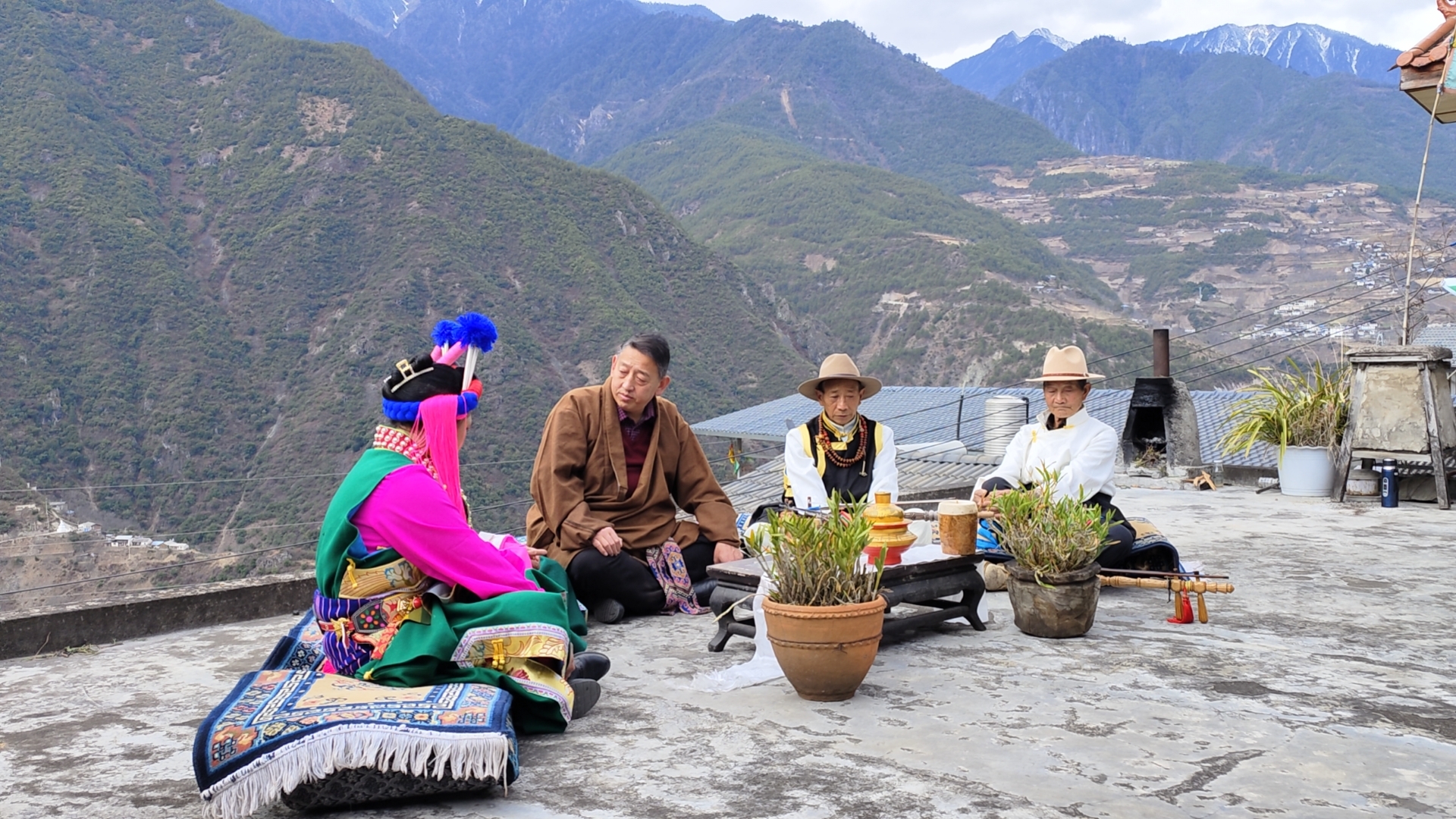 迪慶州廣播電視臺(tái)記者扎西鄧珠在維西縣巴迪鄉(xiāng)采訪弦子藝人。