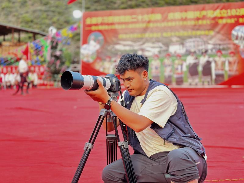 德欽縣融媒體中心記者李春雷在霞若鄉(xiāng)鍋莊節(jié)現(xiàn)場(chǎng)拍攝。