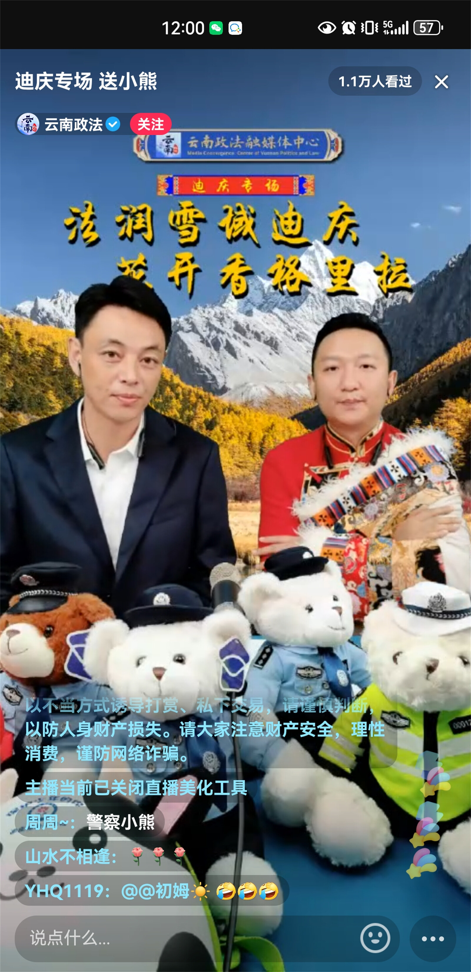 近日,迪慶州政法干警走進云南政法普法強基直播間開展“法潤雪域迪慶、花開香格里拉”迪慶州普法專場直播,直播聚焦群眾關切,緊密聯(lián)系時事熱點,帶廣大網(wǎng)友體驗了一場內(nèi)容豐富的普法之旅,共吸引9.1萬人觀看,獲點贊超10.4萬。