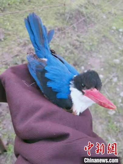 圖為斗格加和生態(tài)管護員一起救助后的“藍翡翠”。斗格加 攝