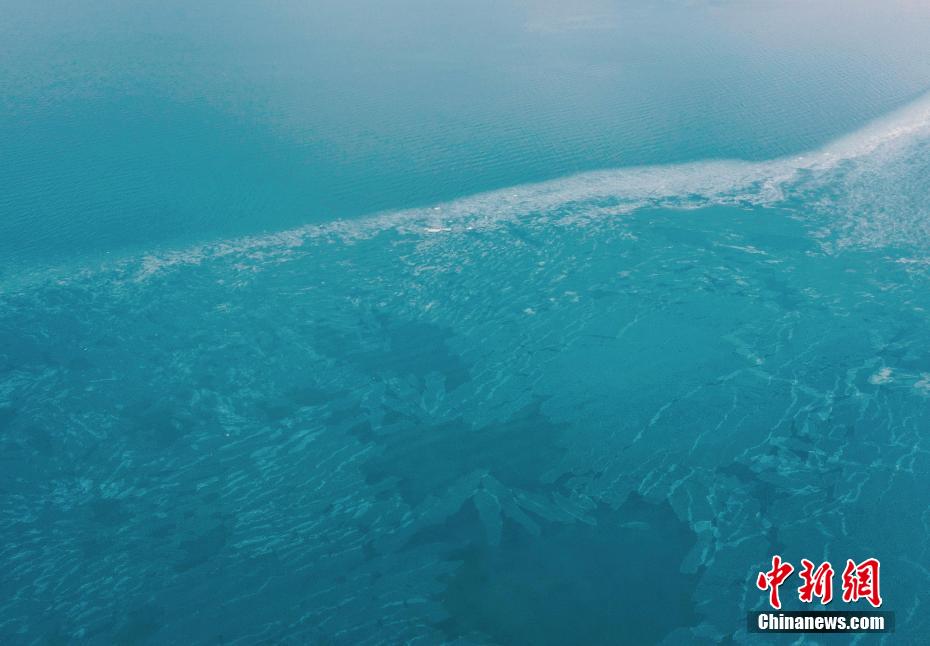 12月13日,航拍青海省海南藏族自治州共和縣境內(nèi)的青海湖漸次封凍。仲冬時節(jié),中國內(nèi)陸最大咸水湖、享有“高原藍(lán)寶石”美譽的青海湖,由岸邊向湖心漸次封凍,進(jìn)入冰封季,冰塊如破碎的水晶漂浮在湖面上,成為冬日青海湖奇特景觀。