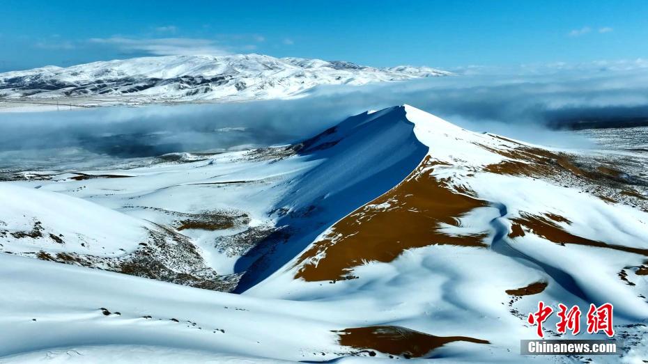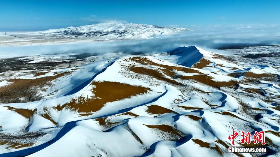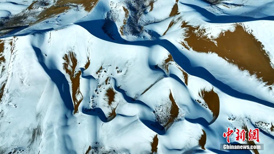 12月中旬,高原青海迎來(lái)新一輪寒潮。在青海湖北岸的青海省海北藏族自治州海晏縣,攝影師在金沙灣拍攝到雪落金沙的冬日景色。航拍鏡頭下沙與雪的色彩明暗交錯(cuò)、波瀾起伏,宛如大自然為大地“咖啡”“拉花”,藍(lán)白交織的純凈讓人心曠神怡。雪后初晴,云河在沙丘間流動(dòng),時(shí)而隨著氣流“流入”青海湖,沙丘背后的蔚藍(lán)湖水,也讓景色變得奇幻優(yōu)美。青海湖是中國(guó)最大的內(nèi)陸高原咸水湖,是維系青藏高原東北部生態(tài)安全的重要水體,也是控制西部荒漠化向東蔓延的天然屏障。
