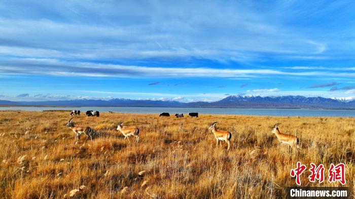黑頸鶴、鵝喉羚多種野生動(dòng)物“同框”現(xiàn)身青海都蘭湖國(guó)家濕地公園