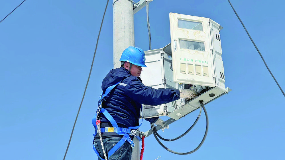 工作人員檢修電網(wǎng)。