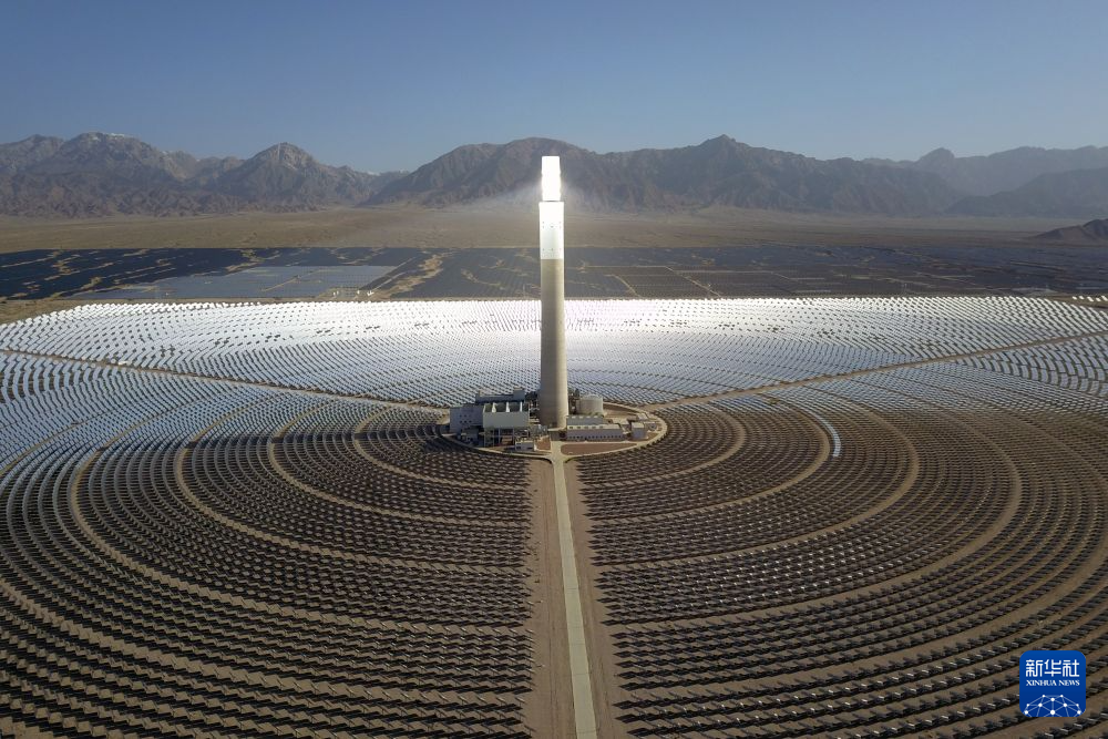 這是2022年6月8日在海西州德令哈市光伏(光熱)產(chǎn)業(yè)園拍攝的光熱電站(無(wú)人機(jī)照片)。新華社記者 范培珅 攝