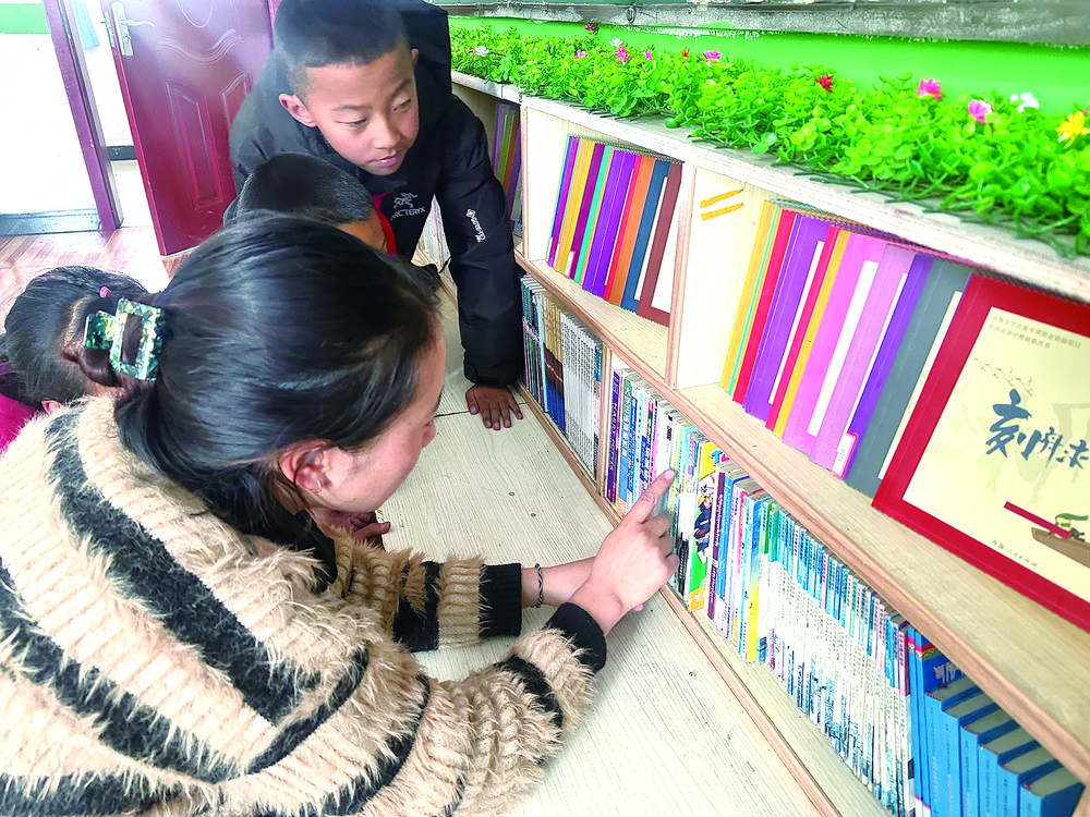 清晨,校園里傳來(lái)孩子們的早讀聲,給這個(gè)平均海拔4700米的鄉(xiāng)鎮(zhèn)增添了不少活力。因?yàn)榘嗉?jí)人數(shù)較少,學(xué)校把教室隔開(kāi),開(kāi)辟出一個(gè)很受孩子們喜愛(ài)的看書(shū)、休息和寫(xiě)作業(yè)的區(qū)域?!艾F(xiàn)在學(xué)校為每個(gè)班級(jí)配備了希沃白板,現(xiàn)代化教學(xué)設(shè)備的引入,不僅豐富了教學(xué)手段,也使得課堂教學(xué)變得更加生動(dòng)、直觀和高效。我們可以通過(guò)希沃白板展示課件、播放視頻、進(jìn)行現(xiàn)場(chǎng)互動(dòng),極大地提升了學(xué)生的學(xué)習(xí)興趣和參與度?!闭讨魅尾槿照f(shuō)。