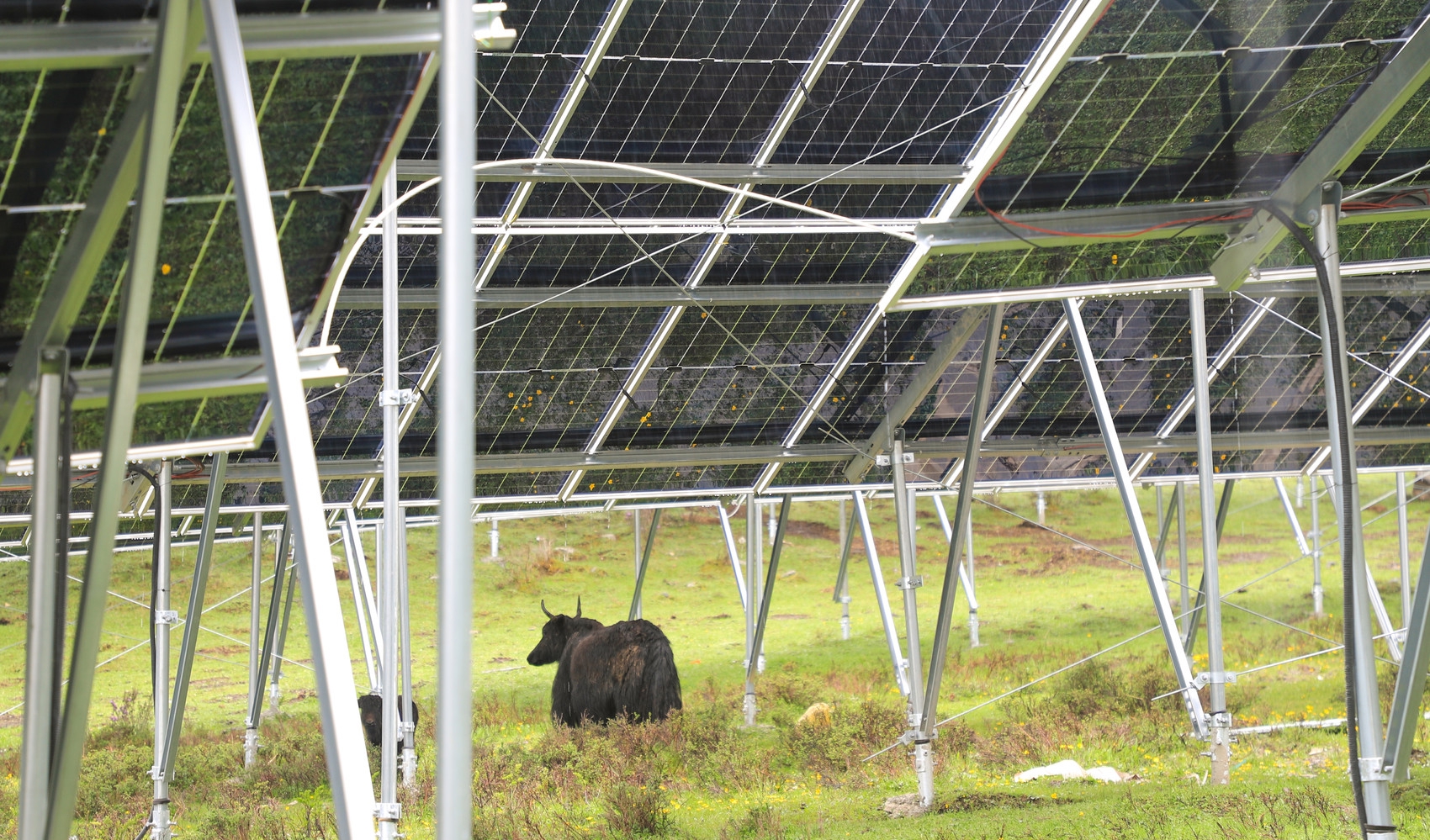 為打消顧慮,項目方探索起“牧光互補(bǔ)”模式,即建設(shè)的光伏板不低于地面1.8米,最高處是2.2米,能實現(xiàn)在光伏板上發(fā)電,板下放牦牛,做到“一草兩用,發(fā)展共贏”。同時,項目方還提前一年在基地建了一塊分布式光伏發(fā)電“試驗地”進(jìn)行驗證。