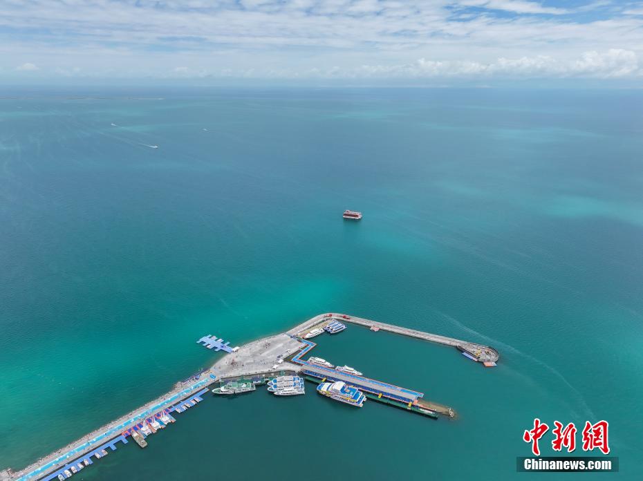 7月8日,航拍游客在青海省海南藏族自治州共和縣青海湖二郎劍景區(qū)內(nèi)觀光。(無人機(jī)照片)中新社記者 馬銘言 攝