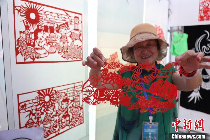 圖為藝人展示剪紙作品。中新社記者 張?zhí)砀?攝