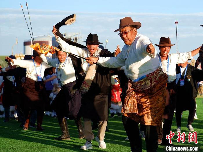 7月20日至23日,第九屆中國·青海國際民族傳統(tǒng)射箭精英賽在青海省海北藏族自治州剛察縣舉行,來自柬埔寨、蒙古國、波蘭、俄羅斯、中國等22個國家和地區(qū)的1100名射箭高手齊聚一堂,展示精湛射箭技藝。本屆賽事設(shè)置現(xiàn)代傳統(tǒng)弓、復(fù)合弓、反曲弓及牛角弓4個弓種,設(shè)置“現(xiàn)代傳統(tǒng)弓混合團體和個人”等5個競賽項目。該賽事已成為中國民族傳統(tǒng)射箭比賽中規(guī)格級別最高、民族選手最多、參賽國家和地區(qū)最廣、弓種和項目最全的國際性品牌賽事。圖為7月20日青海省海北州運動員在青海剛察舉辦的入場式上歡呼。中新社記者 李雋 攝