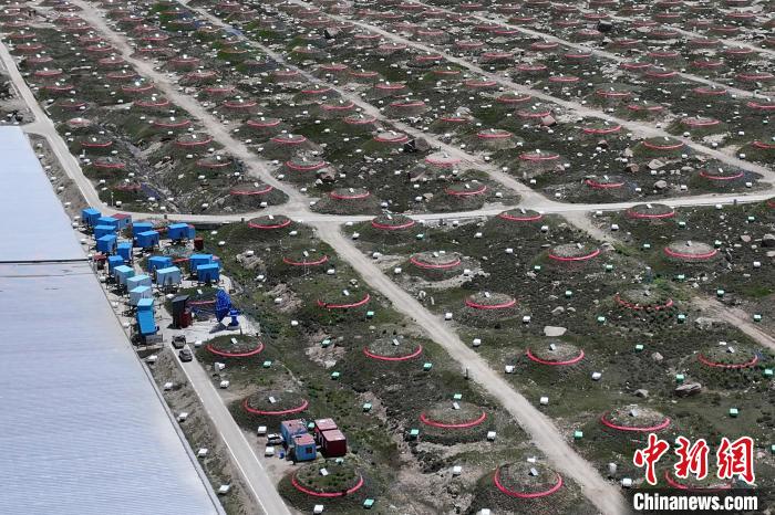 圖為“拉索”一角有序排列的探測(cè)器。(無(wú)人機(jī)照片)中新社記者 劉忠俊 攝