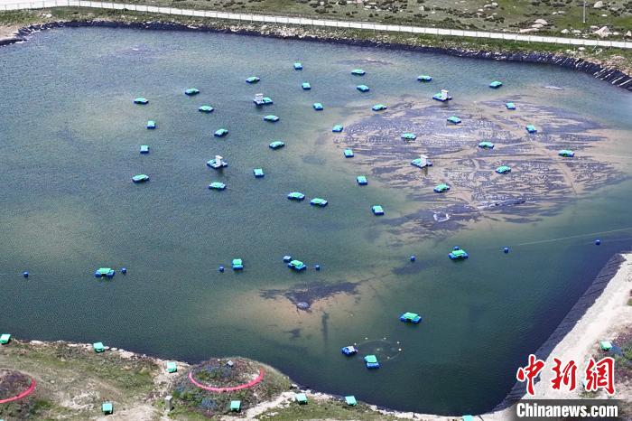圖為高山上“拉索”一處水塘中也安裝了不少探測(cè)器。(無(wú)人機(jī)照片)中新社記者 劉忠俊 攝