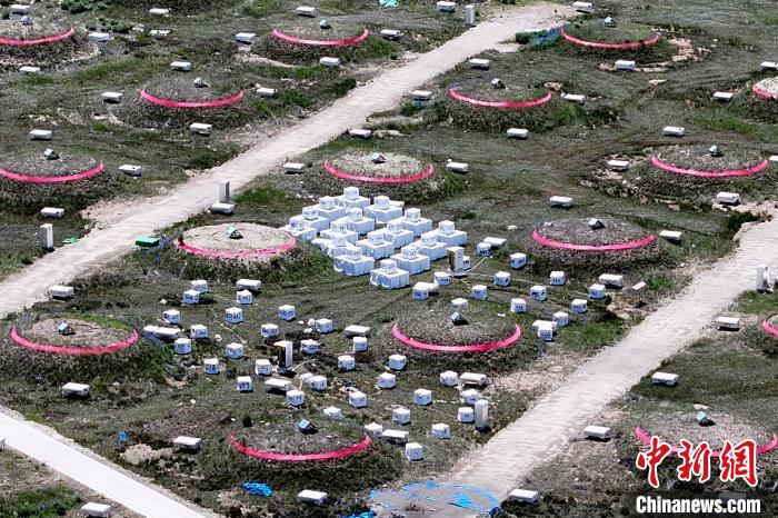 圖為“拉索”一角密集的探測(cè)器。(無(wú)人機(jī)照片)中新社記者 劉忠俊 攝