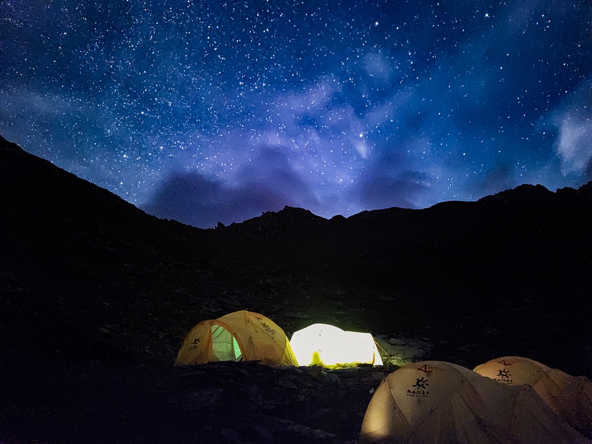 游客在四姑娘山星空下露營。扎西 攝