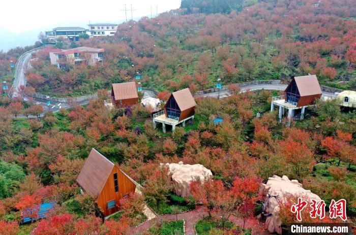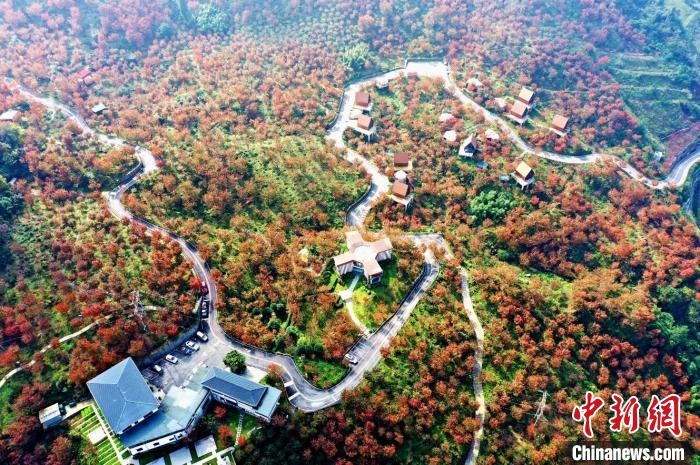 深秋時(shí)節(jié),位于四川阿壩州汶川縣漩口鎮(zhèn)趙公村的400余畝櫻花樹葉迎來最佳的觀賞期。放眼望去,五彩斑斕的櫻花樹葉紅遍山野,如同一幅秋日唯美畫卷。圖為滿山櫻花樹紅葉惹人醉。 伍排勇 攝