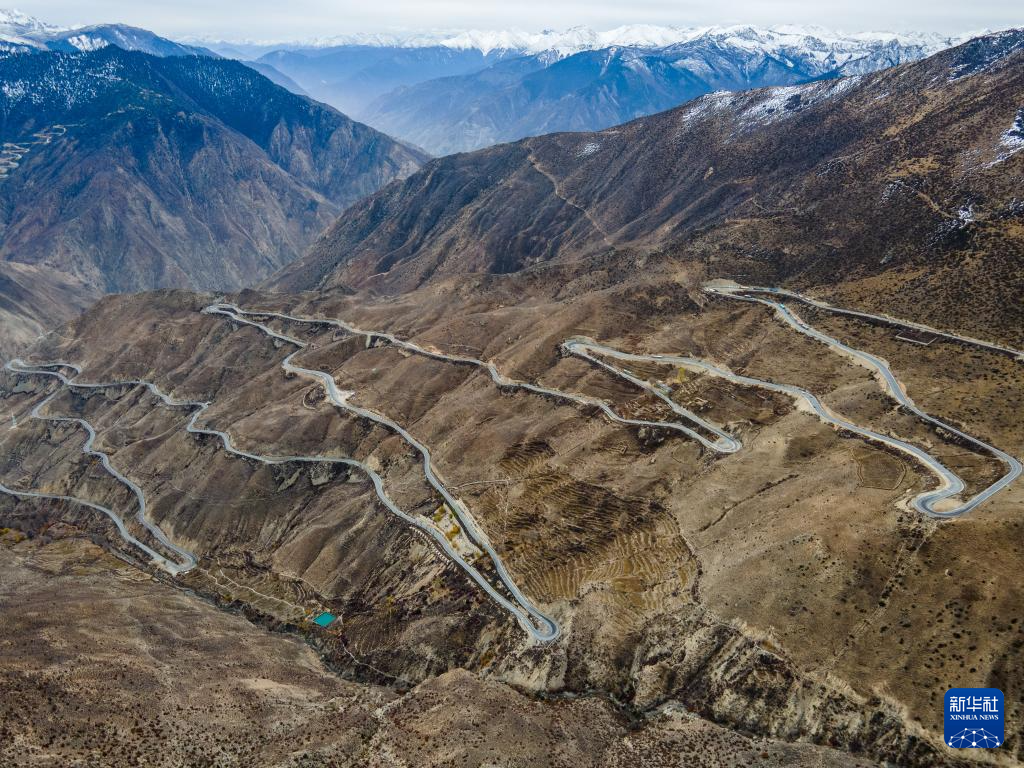 在西藏自治區(qū)昌都市八宿縣拍攝的國(guó)道318公路“怒江72拐”(11月7日攝,無(wú)人機(jī)照片)。新華社記者 沈伯韓 攝