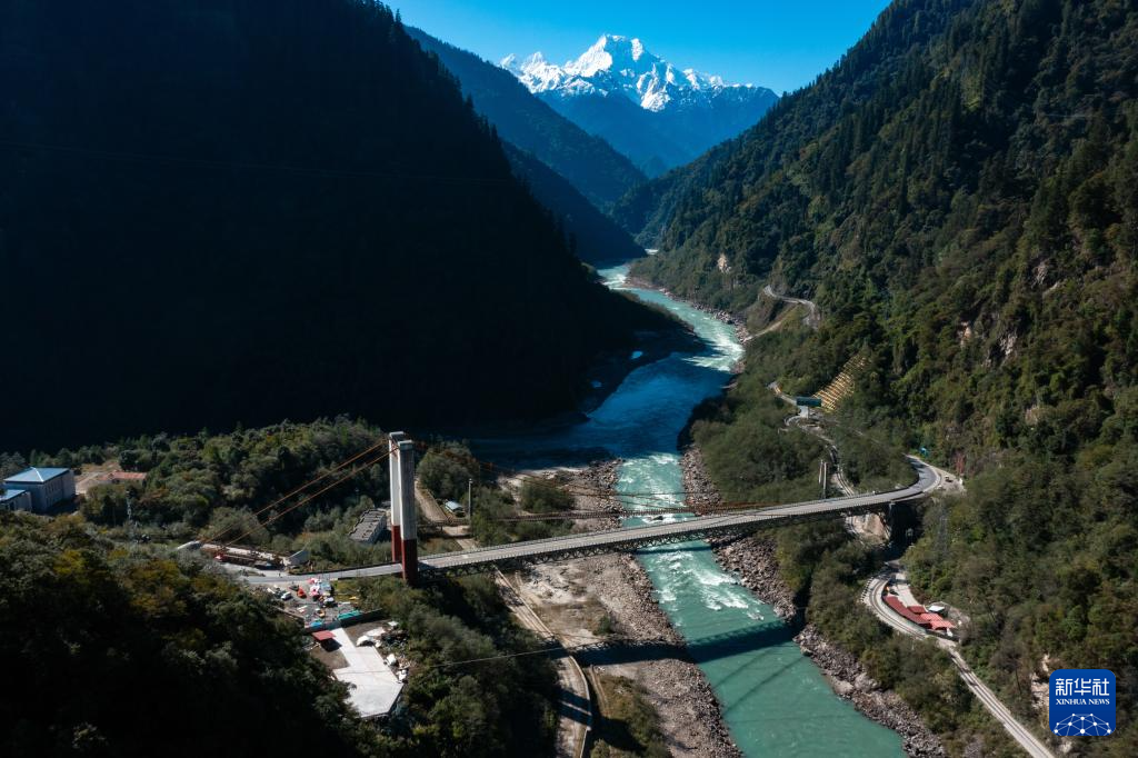 在西藏自治區(qū)林芝市波密縣拍攝的國(guó)道318公路通麥特大橋(11月8日攝,無(wú)人機(jī)照片)。新華社記者 沈伯韓 攝