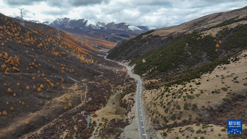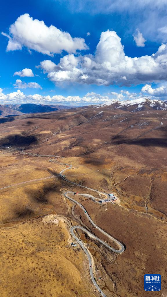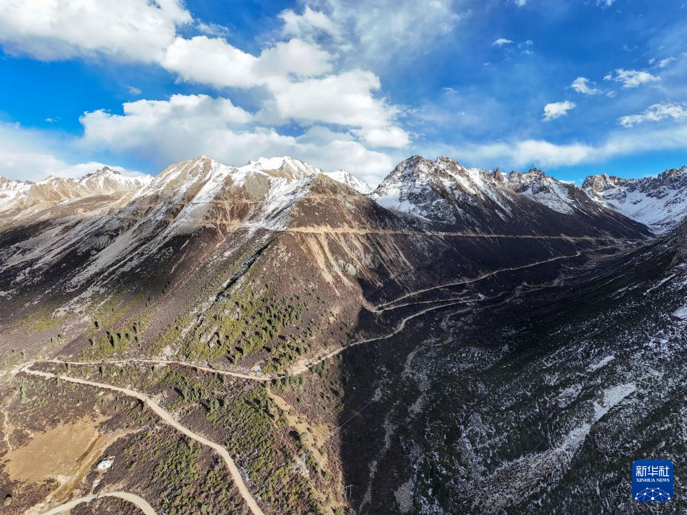在四川省甘孜藏族自治州德格縣拍攝的國(guó)道317公路雀兒山段老路(11月1日攝,無(wú)人機(jī)照片)。新華社記者 王曦 攝