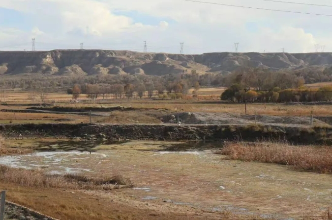 沿著中間的一條小路行走,只見左右兩邊都有鐵網(wǎng)攔著,綠草已經(jīng)有了淺淺的黃,半人高的蘆葦在微風中搖曳,大大小小的水洼點綴在其間,陽光下像極了明亮的眼睛。