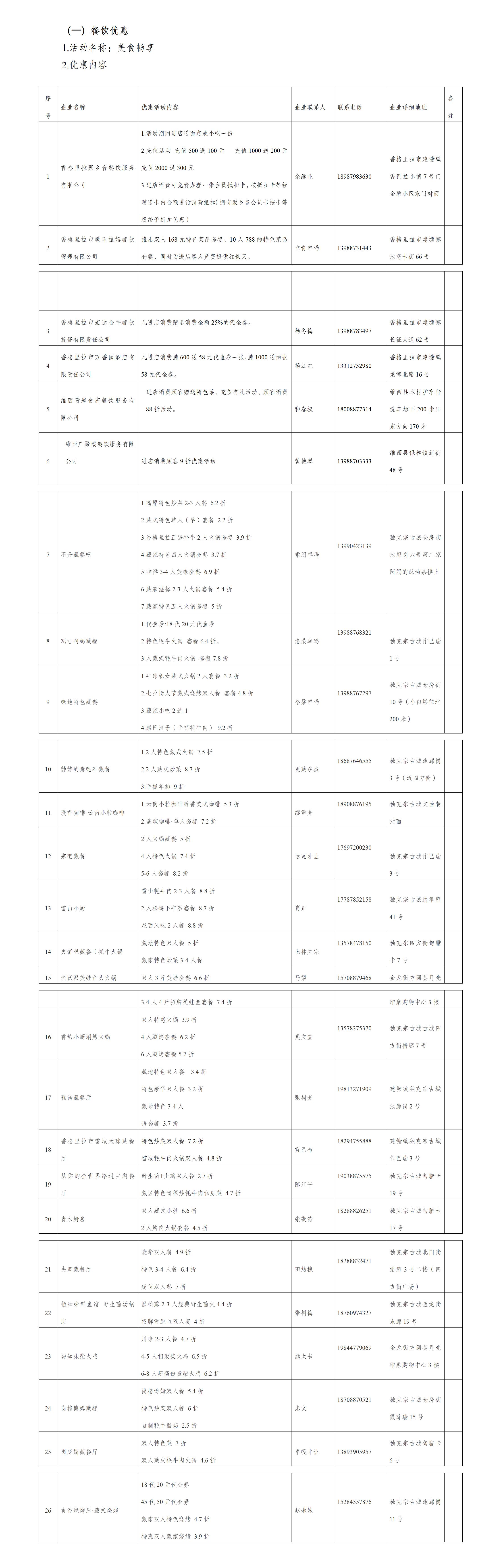 為熱烈迎接香格里拉的冬季旅游市場消費客群,迪慶商務部門在動車開通一周年之際特別推出一系列“吃、住、購”的優(yōu)惠政策。6家線上特色餐飲企業(yè)及20家古城精選餐飲業(yè)將提供2.2折至9.2折的超值優(yōu)惠,同時發(fā)放各類優(yōu)惠券;19家優(yōu)質(zhì)線上住宿企業(yè)及州內(nèi)百余家民宿將提供8折至8.5折的住宿優(yōu)惠;10余家迪慶特色產(chǎn)品的生產(chǎn)銷售企業(yè)推出滿減折扣優(yōu)惠、享受贈品的優(yōu)惠福利,讓廣大游客樂游香格里拉提升旅游體驗。