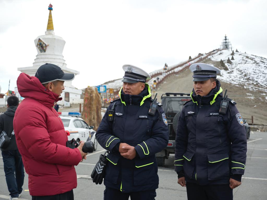 “‘二臺子’那個彎道背陰,冰還沒化,要把警車開到路上去提醒?!?885’彎急,要多注意。‘小壩子’要守兩個人,提醒車子一定不能占道停在路上!”四郎多吉在對講機里“排兵布陣”。