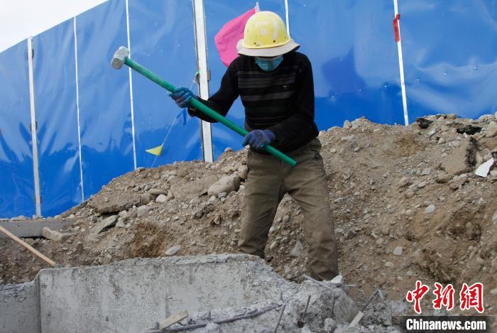 挖掘機(jī)開挖著溝渠,工人們熱火朝天在施工。10日,地處西藏阿里地區(qū)巴嘎鄉(xiāng)(塔爾欽)國際旅游小鎮(zhèn)正在施工建設(shè)。