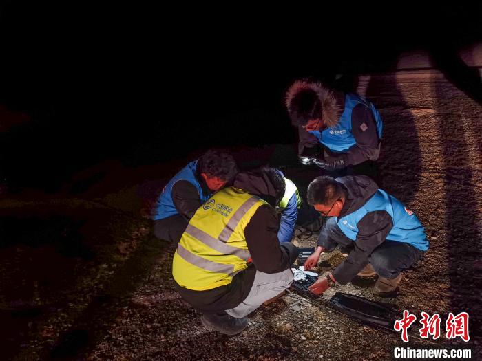 11月15日晚,在雙湖縣嘎措鄉(xiāng),益江與同事搶修通信光纜。李瑞偉 攝