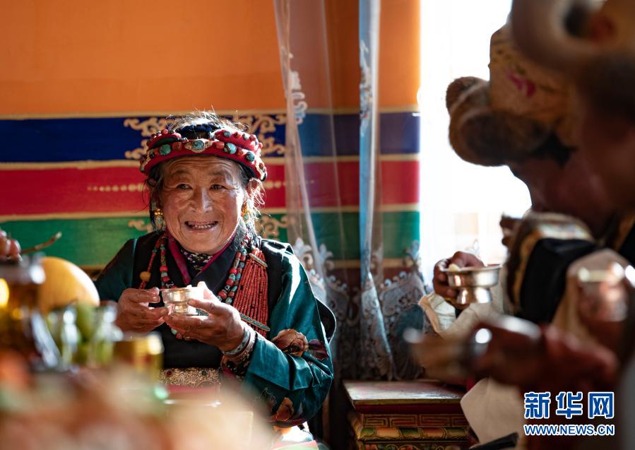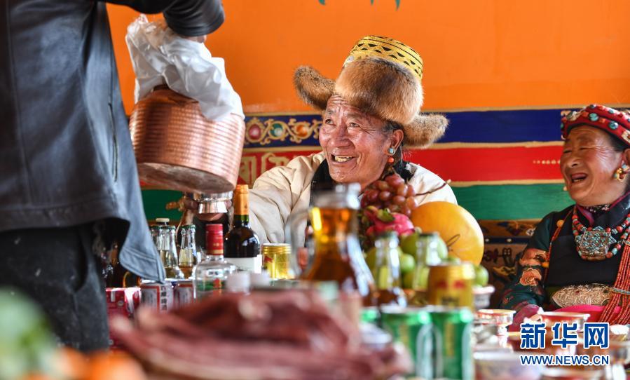 當日,西藏日喀則迎來農(nóng)家新年。在位于薩迦縣扯休鄉(xiāng),毗鄰318國道的嘎吉林村安置點,村民們歡度搬遷新居后的第一個新年。