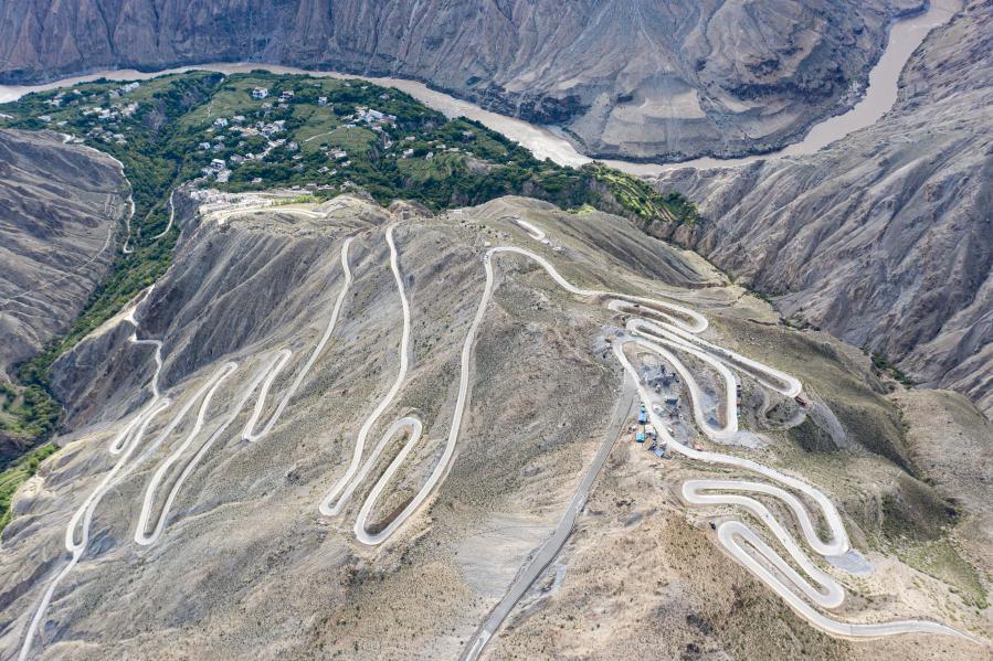 通向西藏昌都市左貢縣怒江峽谷沿岸東壩鄉(xiāng)的公路(2020年9月13日攝,無(wú)人機(jī)照片)。新華社記者 普布扎西 攝