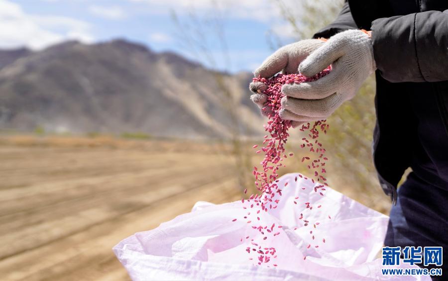 西藏拉薩市曲水縣茶巴朗村農(nóng)民播種的“藏青2000”種子(2020年4月22日攝)。新華社記者 普布扎西 攝