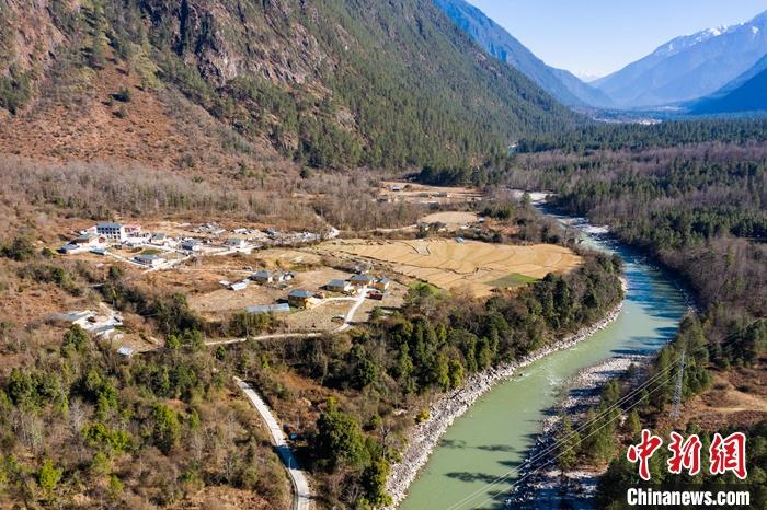 圖為1月28日,航拍察隅縣上察隅鎮(zhèn)西巴村。 中新社記者 何蓬磊 攝