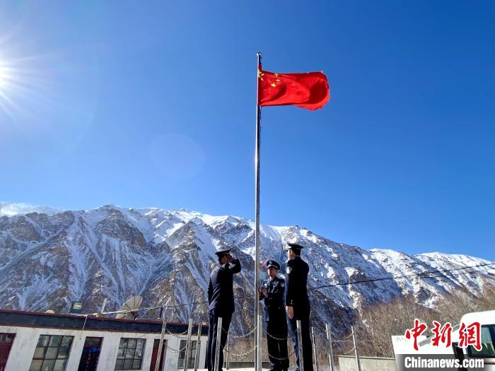圖為普蘭邊檢站舉行升旗儀式。 普蘭邊檢站供圖