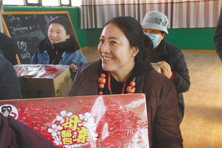 昌都市婦聯(lián)為家庭困難學(xué)生發(fā)放書包。