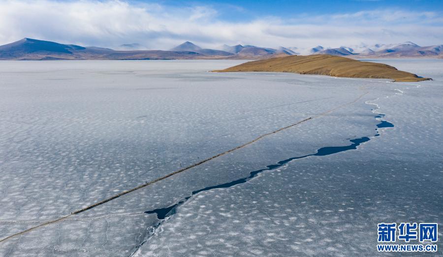 每年高原最冷的時刻,普莫雍錯封凍成冰湖。