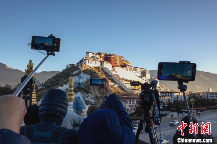 資料圖為2021年1月1日,游客、市民在拉薩布達(dá)拉宮觀景臺(tái)觀看日出。江飛波 攝