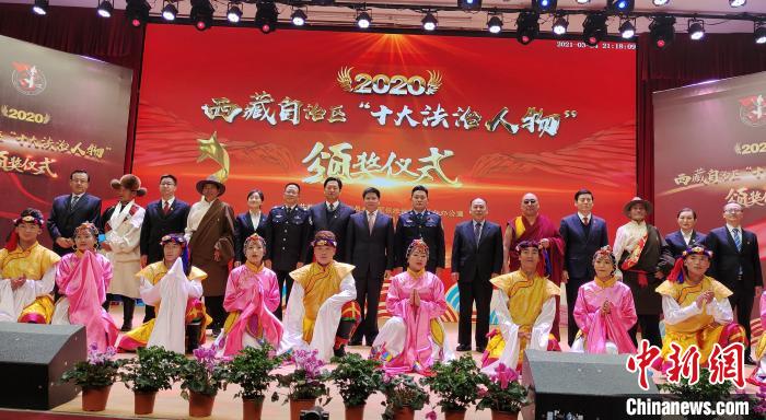 圖為西藏自治區(qū)2020年度“十大法治人物”獲得者合影。貢桑拉姆 攝