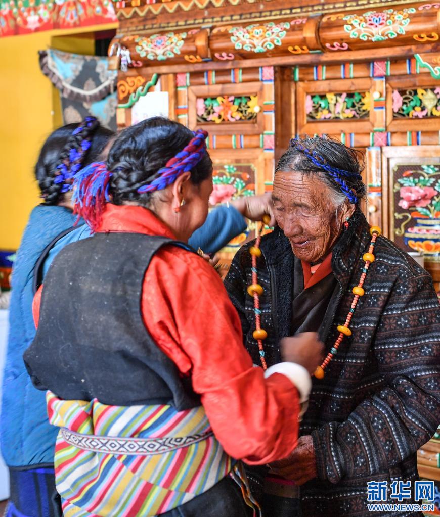 達確女兒給她戴上首飾(1月14日攝)。新華社記者 晉美多吉 攝