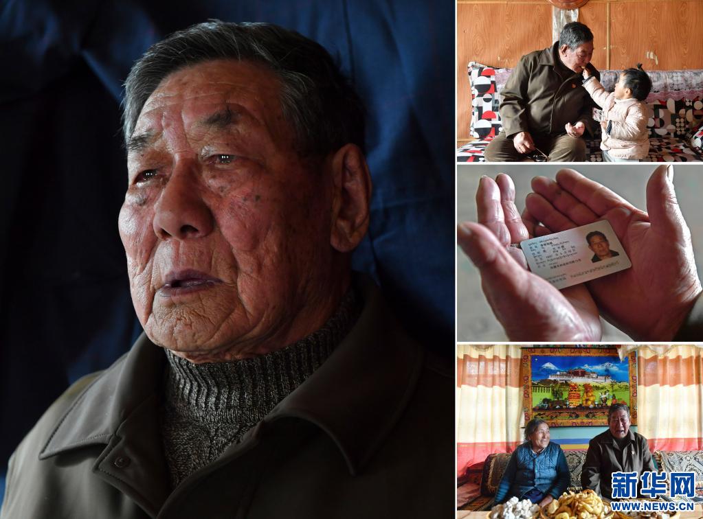 這是一張拼版照片,左圖為索朗楊佩的肖像;右上圖為索朗楊佩(左)和孩子一起玩耍;右中圖為索朗楊佩的身份證;右下圖為索朗楊佩(右)和老伴兒卓嘎在米林縣單嘎努覺村的家中留影(照片均為3月30日新華社記者孫瑞博攝)。新華社發(fā)