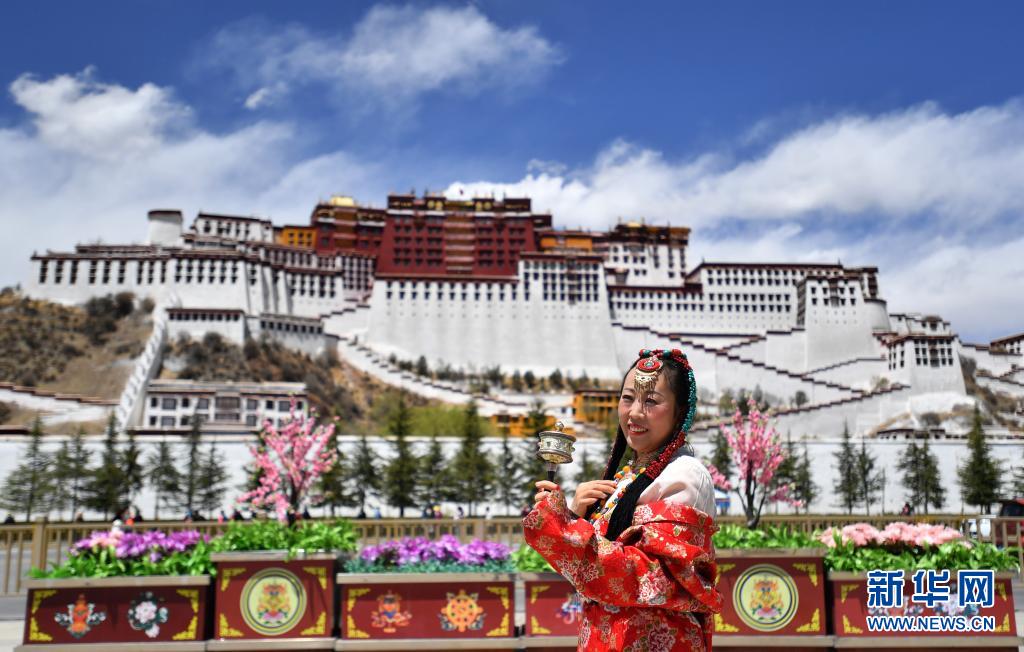 4月23日,來自重慶的游客在布達(dá)拉宮廣場留影。新華社記者 覺果 攝