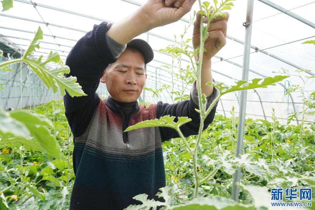 西藏曲水縣南木鄉(xiāng)江村村民李守遠正在給蔬菜授粉(2021年3月30日攝)。 新華社記者 王澤昊 攝