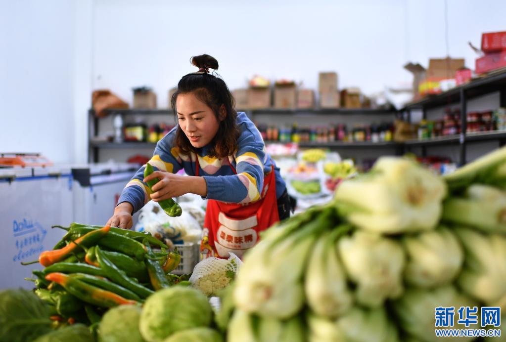 在西藏丁青縣尺牘鎮(zhèn)農貿市場,商販在整理蔬菜(2020年9月18日攝)。 新華社記者 詹彥 攝