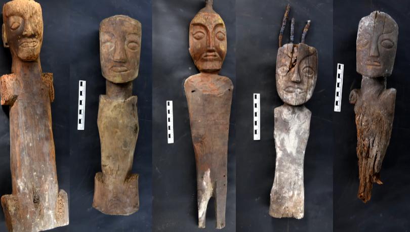 桑達(dá)隆果墓地還出土了5件木俑,形態(tài)各異,有的胸部刻有鷹鳥的形狀。拙樸的雕刻手法,與新疆吐魯番發(fā)現(xiàn)的木俑有相似之處。
