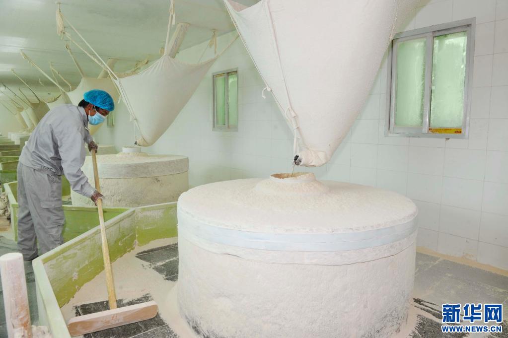 一名工人在西藏白朗縣的康桑農(nóng)產(chǎn)品發(fā)展有限公司水磨車(chē)間工作。(2015年6月30日攝)新華社記者 張汝鋒 攝。
